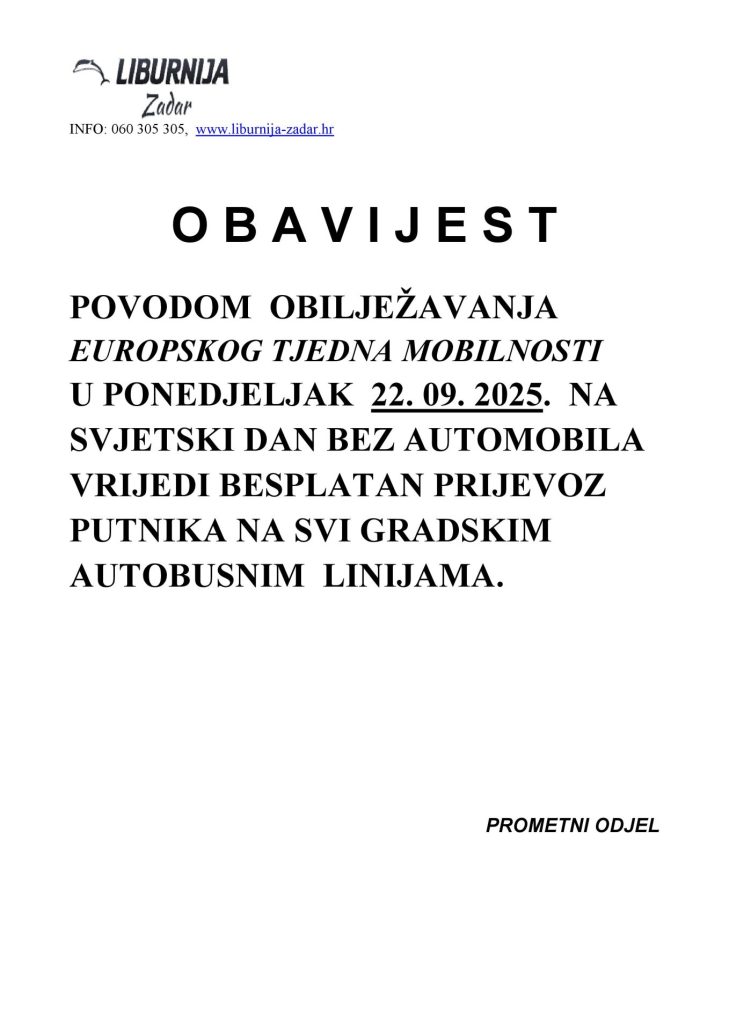 Obavijest za liniju Kolodvor – Poluotok – Arbanasi Obavijest za liniju ”Diklo – Bunari”