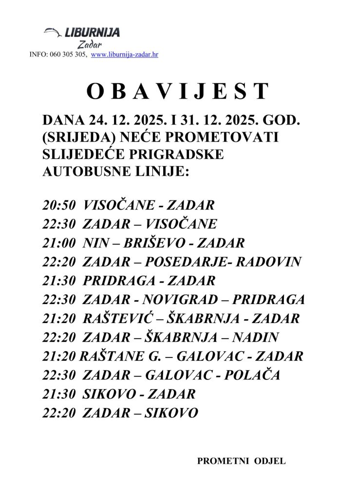 Autobusni kolodvor Zadar: 05:30 – 22:00