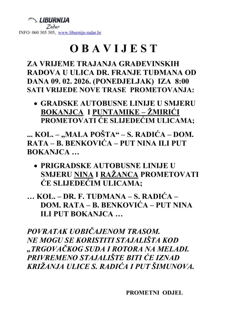 Autobusni kolodvor Zadar: 05:30 – 22:00